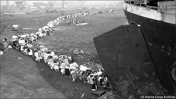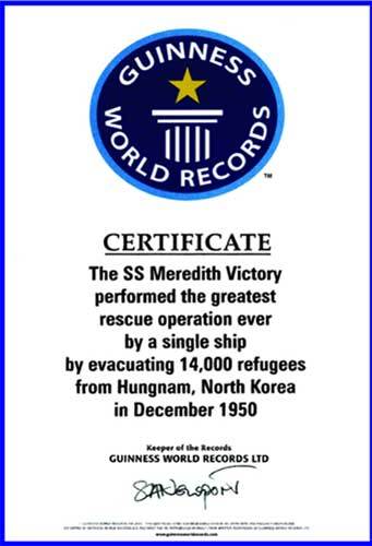 그렇게 피난민들을 수송한 마지막 배는 우리가 이제는 그 이름을 아는 메레디스 빅토리호, 승조원 35명과 장교 12명, 그리고 승객 최대 12명 등 59명을 태울 수 있도록 설계된 길이 450피트(137.16m), 폭 50피트(15.24m)의 화물선이었다. 미군은 군사물자를 버리고, 기중기 팔(boom)과 즉석 제작 엘리베이터를 이용해 피란민 1만 4,000명을 차례로 태웠다. 그 많은 피난민은 질서정연했다. 모두가 함께 차례를 기다려 배를 탔다. 25년 뒤인 1975년 4월에 베트남 패망 때 마지막 철수를 하는 미군 비행가와 배에 올라타려던 베트남인들이 수없이 떨어져 숨지는 것 같은 비극적 사고는 없었다.