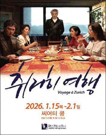 [우리문화신문=이한영 기자] 오는 1월 15일부터 2월 1일까지 서울 종로구 창경궁로 253-7. ‘씨어터 쿰’에서는 연극 <취리히 여행>이 열린다.