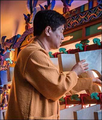 ▲ 김종민 씨는 현(現) 보유자 김현곤 씨의 아들로, 부친의 작업을 도우며 편종ㆍ편경 제작 기능을 전수받았다. 2013년 전수장학생으로 뽑힌 뒤 2016년 이수자가 되었으며, 문헌에 기반한 전통 악기 연구와 악기 제작기량을 꾸준히 연마하여 해당 분야를 체계적으로 전승하고 있다는 평가를 받았다.