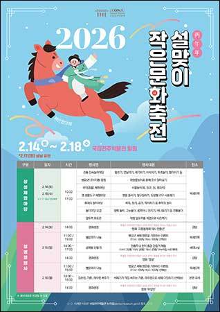 [우리문화신문=이한영 기자] 국립전주박물관(관장 박경도)은 2026년 우리 겨레 가장 큰 명절인 설을 맞이하여 온 가족이 함께 즐길 수 있는 ‘제30회 설맞이 작은문화축전’을 오는 2월 14일(토)부터 2월 18일(수)까지 국립전주박물관 일원에서 연다. 단, 설날 당일인 2월 17일(화)은 쉰다. 이번 설 명절 행사는 ‘상설체험마당’과 ‘명절 행사’로 나누어 운영하며, 박물관을 찾은 관람객들이 다양한 체험행사를 즐길 수 있도록 선보인다.