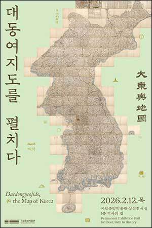 [우리문화신문=한성훈 기자] 국립중앙박물관(관장 유홍준)은 2026년 2월 12일(목)부터 상설전시실 1층 ‘역사의 길’에서 고산자(古山子) 김정호(金正浩, 1804?~1866?)의 《대동여지도大東輿地圖》 22첩 전체를 펼쳐 전시한다. 이번 전시는 1861년(철종 12) 김정호가 제작한 《대동여지도》 전체를 한눈에 볼 수 있는 특별한 기회다.