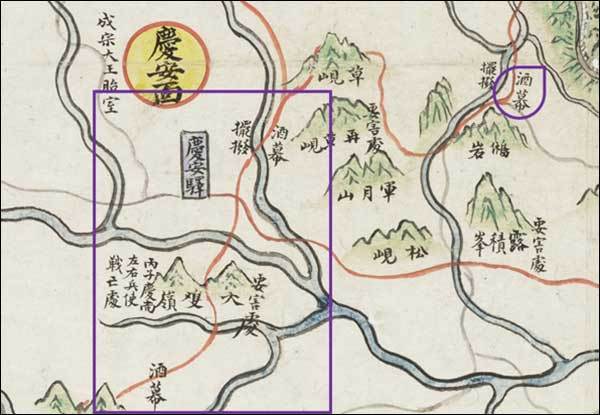 어명을 들고 나타난 관리를 만나는 이적이 일어난 곳은 보라색 네모 친 구간의 길이었을 것으로 추측해 본다. 또한 그들이 만난 뒤 남한산성으로 가는 도중에 묵었던 주막은 보라색 물방울 모양을 친 곳이 아니었을까 추정해 본다. 그 까닭에 대해서는 다음에 설명한다.
