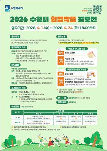수원시 관계자는 “환경 작품 공모전이 시민들이 환경의 소중함을 되새기고 친환경 생활을 실천하는 계기가 되길 바란다”라며 “많은 시민의 관심과 참여를 바란다”라고 말했다.