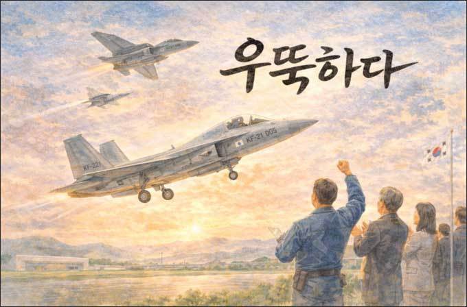 봄이 한결 더 가까워짐을 느끼는 가운데 반가운 기별이 들려왔습니다. 우리 손으로 만든 한국형 전투기 KF-21 첫 번째 비행기가 세상에 나왔다는 기별이었습니다. 경남 사천에서 열린 행사에서 많은 사람들이 모여 전투기가 처음 나온 것을 함께 기뻐했고, 앞으로 우리 기술을 더 키워 세계로 나아가겠다는 뜻도 밝혔습니다. 이 기별을 들으며 떠올린 우리말이 바로 ‘우뚝하다’입니다.