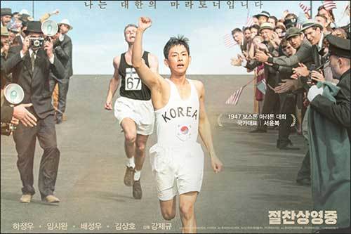 그러나 경기 도중 갑자기 튀어나온 개에게 걸려 넘어지는 불운을 겪었고, 운동화 끈이 풀어지는 악재 속에서도 끝까지 달려 우승을 차지했습니다. 강제규 감독은 “1947년은 혼란스럽게 희망이 별로 없던 때였습니다. 그런 상황에서도 목표를 이루고 꿈을 실현하기 위해 온 힘을 다했던 사람들을 통해 힘과 용기를 전하고 싶다.”라고 말합니다.