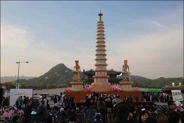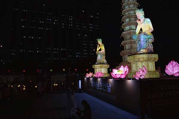 올해 연등회는 광화문 광장에 불탑을 점등하면서 시작한다고 보는데, 야간 연등행렬은 5월 16일(토) 6시부터 동국대에서 출발한 행렬이 동대문(흥인지문)을 지나 종각까지 행진하는 것이 절정이다. 어제 4월 22일에는 연등회의 시작을 알리기 위한 모형석탑 점등식이 있었다. 올해의 모형석탑은 북한 묘향산 보현사의 8각13층 석탑을 한지로 만들어 세운 것이다. 지금은 비록 남처럼 살고 있지만 언젠가 다시 통일이 되어 함께 살 날을 기원하면서 세운 탑이라고 한다.