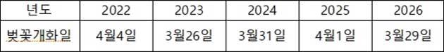 <표1> 최근 5년 동안의 서울 벚꽃 개화일