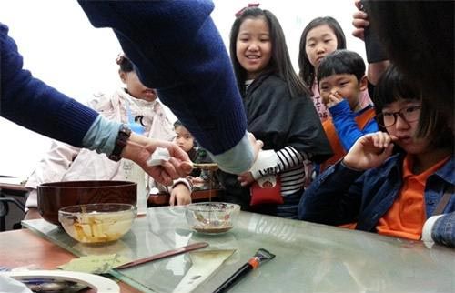[그린경제=김보람기자] 토요문화학교 학생들이 드디어 '생칠'을 만나게 되었다. 처음 보는 옻칠에 신기해하는 모습이다.