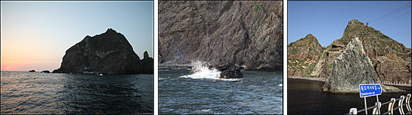 ▲ 환상적인 독도의 석양(왼쪽), 바다가 거칠어진다.(가운데), 독도 도로명 주소