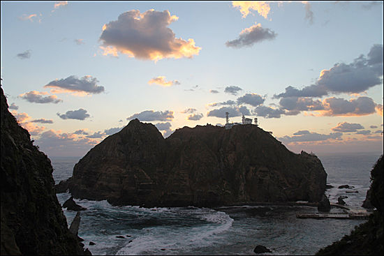 한참을 물골 파도를 구경하다가 대한봉으로 올라와 석양을 기다린다. 오늘의 해넘이는 구름이 없어야 될 텐데 빌어보았으나. 태풍의 끝은 길기만 하다. 숙소로 내려와 저녁을 먹고 부두에 나오니 동도 가운데로 달이 떠오른다. 예쁜 달이 초저녁 독도 하늘에 살짝 떠오르니 며칠째 집 떠나와 있는 사내는 아내가 보고 싶다. 촛불과 몽돌 굴러가는 소리에 익숙하여 잠자리가 외롭지 않다. [독도의 계단 수를 참고로 대략 세어보았다. 대한봉 273, 물골 440, 동도 370, 망양대 78]