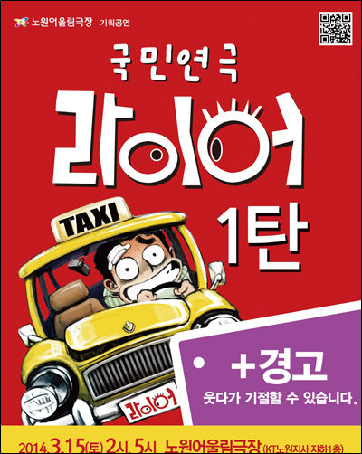 노원어울림극장에서 올려지는 “라이어”는 3월 15일(토), 오후 2시, 5시 전석 2만원에 관람할 수 있다. 기타 자세한 사항은 누리집(www.nowonart.kr)과 전화 02)951-3355를 통해 알 수 있다.