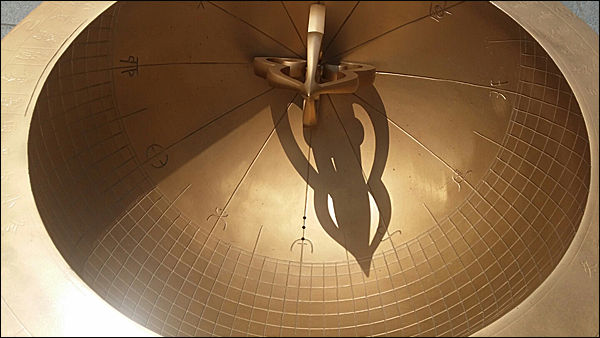 ▲ 광화문광장 세종이야기 안에 있는 오목해시계 복원품, 역시 동물신 그림이 없고 그 자리를 한자가 차지했다.