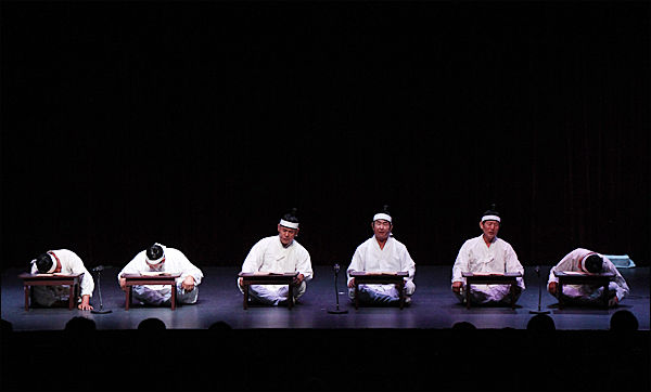 특히 세 번째 무대는 남성 소리꾼들만 나와 국문뒷풀이를 한다. 서안에 책을 놓고 국문뒷풀이를 하다가 하나둘 서안에 머리를 박고 잠이 드는 모습을 보면서 청중들은 손뼉을 치며 크게 웃는다. 청중에 다가서는 노력이 공연에 빛을 더해주는 순간이다.