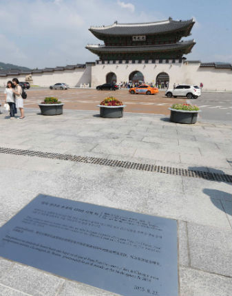 이날 설치된 바닥돌 너머 광화문이 보이고 있다.
