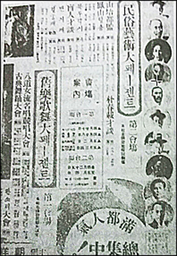 | ▲ 조선일보에 실린 "전조선향토예술대회" 기사, 이동백ㆍ임방울 명인창 함께 나란히 실린 박춘재(맨 아래) | ||