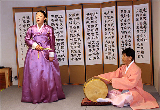 | ▲ 춘향가 가운데 "이별하는 대목"을 부르는 김미나 명창 | ||