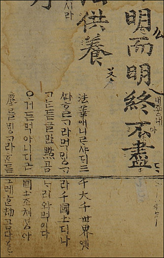 [우리문화신문=한성훈 기자] 가장 오래된 한글 붓글씨가 경기도 고양시 원각사(주지 정각 스님)가 소장하고 있는 불교 경전 《능엄경(楞嚴經)》 에서 발견됐다. 문화체육관광부와 동국대의 지원을 받아 문헌 집성 작업을 하고 있는 동국대 불교학술원 ABC사업단에 따르면 이번 확인된 한글 붓글씨는 1461년 이전에 쓴 것으로 추정되어 가장 오래된 한글 붓글씨다.