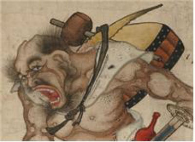 | ▲ 조선시대 뇌신(雷神)의 세부 모습, 김덕성(金德成, 1729~1797)이 그린 뇌공도(雷公圖 ), 18세기 후반, 136×70cm | ||