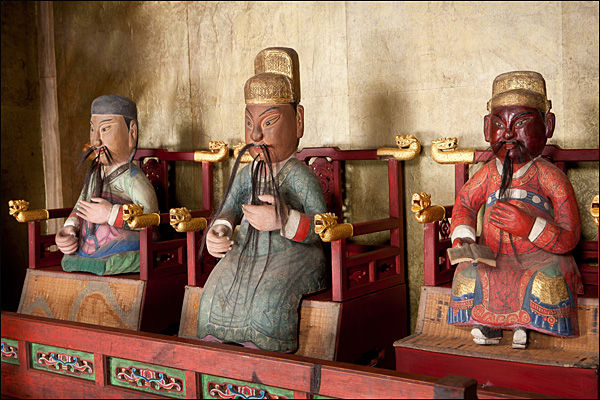 | ▲ 장비·유비·관우 좌상, 동관왕묘 소재 | ||
