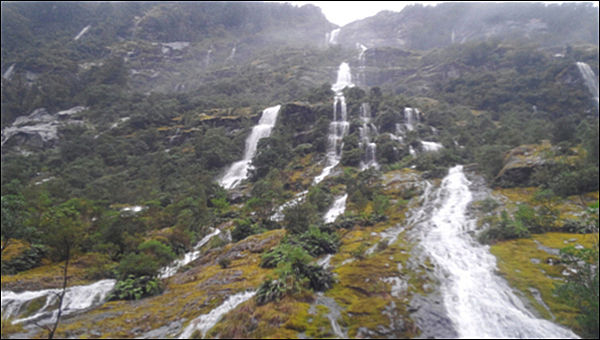 지난밤에도 밤새껏 장대비가 왔다. 다음 날이 되었음에도 쉬지 않고 굵은 비가 계속 내린다. 오늘은 제대로 갈 수 있을까 걱정된다. 우리 한국인들 빼고 모두 출발했다. 우리도 7시 반쯤 출발했다. 굵은 비는 아니지만 비는 계속 내린다. 그나마 다행이거니 하고 걷는다. 오늘 해발고도 600미터 지점에서 1,000미터 지점에 있는 맥키논 고개(Mackinnon Pass)까지 올라가고 다시 내려와야 한다. 나흘 중 가장 힘든 구간이고 어제 헬기로 탐방객을 나른 구간이라 또 헬기를 타야 되나 하는 걱정도 앞선다.