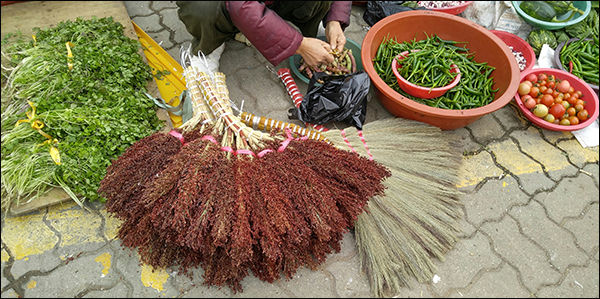 뿐만 아니라 사과며 군침이 도는 붉은 홍시를 비롯한 각종 과일과 참깨, 들깨,녹두, 조, 팥 등 지역에서 생산한 잡곡도 시장에 한가득하다. 그런가 하면 오일장에서나 볼 수 있는 수수빗자루와 꾸러미 달걀, 무공해 비누 등도 눈길을 끈다.