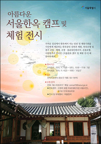 ○ 한옥캠프 : 2016. 11. 4(금) ~ 5(토), 10:00~17:00 ‘2일간’