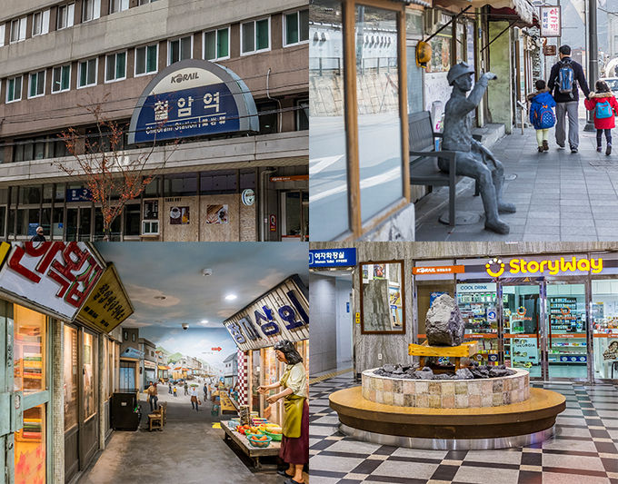 철암역은 역사보다 그 옆에 자리한 선탄장이 유명한데, 영화 〈인정사정 볼 것 없다〉를 이곳에서 촬영하기도 했다. 선탄장 건너편에 자리한 마을 풍경도 독특하다. 곧 쓰러질 듯한 2~3층 건물이 당시 모습 그대로다. 지금은 철암탄광역사촌으로 재단장해 박물관이며 전시장으로 사용된다.