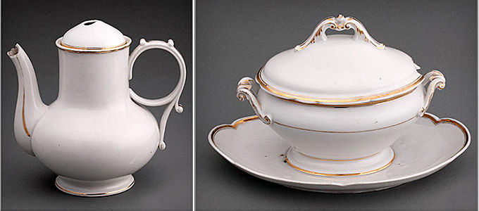 국립고궁박물관 수장고에는 만찬장에서 사용되었을 것으로 생각되는 다양한 식기들이 남아있습니다. 프랑스, 영국 등 유럽 등지의 ‘튜린(tureen)’, ‘주전자’와 일본이나 중국 등지에서 제작한 서양식 식기들도 있습니다. 이러한 집기들은 외형으로도 서양식 식기임을 알 수 있지만, 바닥면에 찍힌 제조사 마크로 제작한 시기와 제조국을 파악할 수 있습니다.