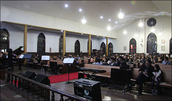 어제 ‘책을 여는 음악회’는 저녁 7시 정동제일교회 벧엘예배당에서 9시까지 이어졌다. 배성호 삼양초등학교 교사의 사회로 정동교회 조영준 담임목사의 인사와 추모 기도에 이어 유족대표인 김란사기념사업회 김용택 회장의 인사말이 있었다.