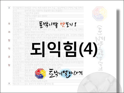 날마다 토박이말 맛보기를 해 드리고 있는데 지나고 나면 잘 생각이 나지 않는다는 분들이 많으십니다. 그래서 다시 익힐 수 있는 자리를 마련해 달라고 하십니다. 벌써 ‘토박이말 맛보기1’에 나오는 토박이말 스무 낱말을 알려 드렸는데 그 가운데 열 낱말은 되익힘을 했는데 열 낱말은 하지 못했습니다. 그래서 세 묶음으로 나눠 되익힘을 한 다음 새로운 토박이말을 맛보여 드리도록 하겠습니다.^^