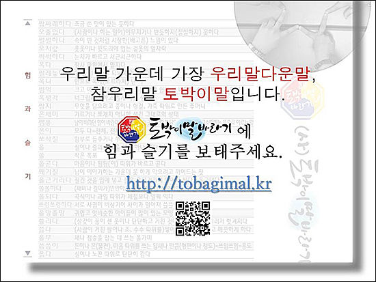 오늘도 토박이말 되익힘을 합니다. 앞서 맛보여 드린 토박이말을 되새기며 토박이말과 좀 더 가까워지시기를 바랍니다.