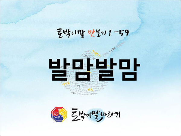 오늘 맛보여 드리는 발맘발맘은 '추적'이라는 것을 하는 모양을 가리키는 말이라고 할 수 있습니다. 이 말의 말밑(어원)은 '밞+암+밞+암'이라는 풀이가 가장 그럴듯하고 '한 발씩 또는 한 걸음씩 길이나 거리를 가늠하며 걷는 모양'를 가리키기도 하니 자주 써 보시기 바랍니다.