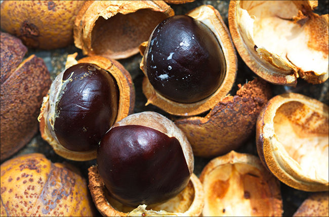 프랑스에서는 '설탕에 절인 밤톨'이라는 뜻의 프랑스 겨울 디저트 ‘마롱글라세(marrons glaces)’라는 고급 과자로, 일본에서는 돗토리 현의 특산품 칠엽수(七葉樹)의 열매를 섞어서 찧은 떡 ‘도치모치[栃餅]’라는 화과자의 재료로 이용된다. 만드는 방법은 도토리묵과 비슷하게 열매를 갈아 물에 탄닌의 독성을 우려서 없앤 뒤 식재료로 사용한다.