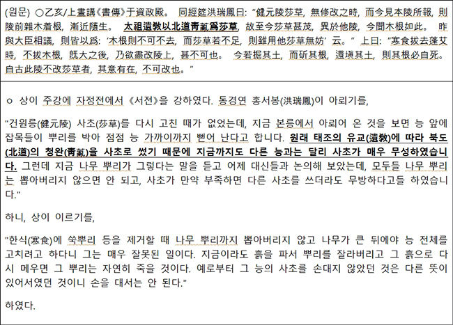 ㅇ 《인조실록》(인조 7년 3월 19일): 태조의 유교(遺敎)에 따라 청완(억새)을 사초로 썼다는 기록 등장