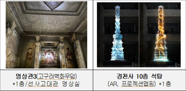 1층 복도(역사의 길)에 있는 경천사 십층석탑은 이번 실감콘텐츠 체험관의 백미다. 낮에는 증강현실(AR) 기술을 통해 각 면의 조각을 자세하게 살펴볼 수 있고, 해가 진 뒤에는 석탑의 각 층에 새겨진 조각과 그 안에 담긴 의미와 숨은 이야기들을 외벽영상(미디어파사드) 기술로 구현한 작품을 특별히 만나볼 수 있다.