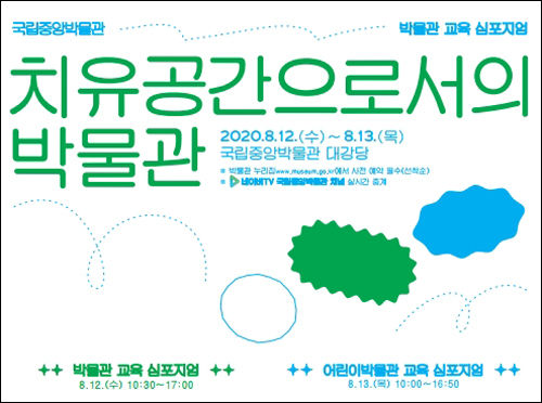 8월 12일(수)~13일(목) 이틀 동안은 ‘2020년 박물관 교육 토론회’를 연다. ‘치유 공간으로서의 박물관’을 주제로 한 올해 토론회는 박물관이 정보 제공의 공간을 넘어서 정서적ㆍ치유적 공간으로의 가능성을 조망해 보는 자리로 구성한다. 이틀 동안 동일한 주제로, 12(수)에는 특히 의학ㆍ교육ㆍ문화적 관점에서 치유 공간으로서의 박물관을 논의해 보고 다양한 박물관의 고민과 시도를 공유한다.