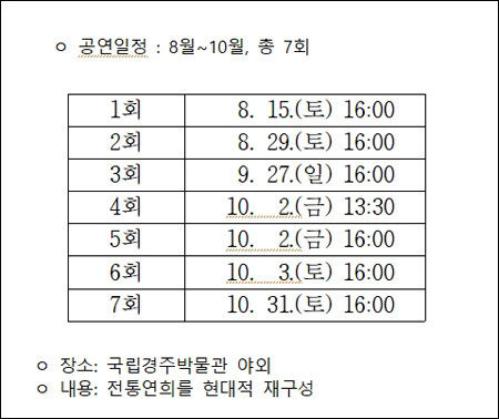 과거와 현재가 공존하는 경주박물관에서 현대적 감성으로 재구성한 전통연희를 통해 풍물의 새로운 면모와 문화예술 향유의 기회를 만끽하길 기대한다.