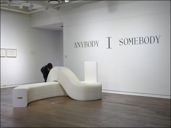 다음 작품인 <누군가와 아무나를 위한 자리>는 관람객이 좌우에 배치된 Somebody(누군가)와 Anybody (아무나)라고 적힌 의자의 거리를 관객 스스로 조정하고 이를 사진으로 기록을 남기는 작품이다.