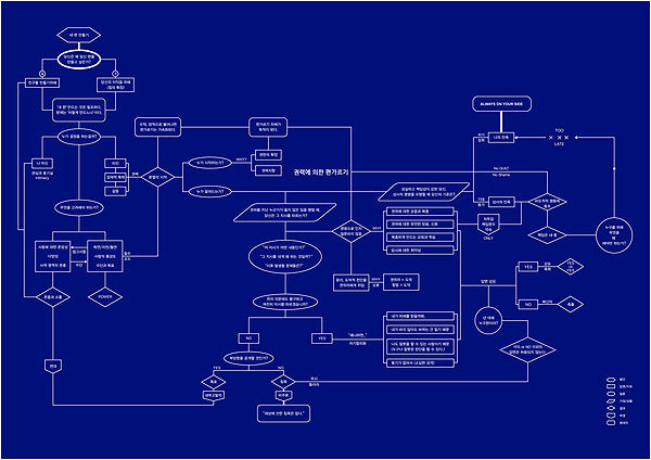 <내 편 만들기(Flowchart)>는 박혜수 작가가 성유미 정신과전문의에게 자문을 얻어 제작했다. 마치 컴퓨터 과학책에 나올법한 순서도(Flowchart) 형식을 빌려 나와 타인의 ‘관계 맺음’에 대한 문제를 성찰해 볼 기회를 얻게 하는 작품이다.