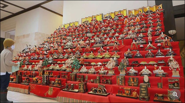 [우리문화신문=이윤옥 기자] 만일 해외여행 중, 머무는 호텔 로비에 작은 인형들이 산더미처럼 장식되어 있다면 손님들의 반응은 어떠할까? 인형을 호텔 로비에? 혹시 어린이 호텔 아니냐고 반문하는 사람이 있을지 모른다. 그러나 그런 호텔이 일본에 있다. 그것도 어린이 호텔이 아닌 일반 성인을 위한 호텔이다. 호텔 로비에 층층이 계단을 쌓고 붉은 천을 깐 뒤 그 위에 인형을 장식해 놓은 곳은 니가타현 태내시 나쓰이(新潟県 胎内市 夏井)에 있는 로얄태내 파크호텔이다.