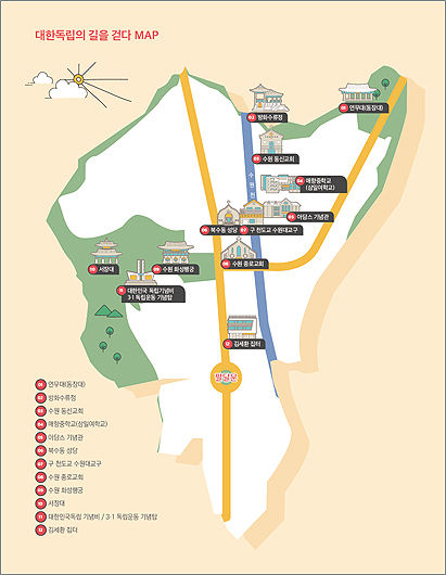 [우리문화신문=이윤옥 기자] ‘대한독립의 길을 걷다’라는 제목의 수원시 인문기행 두 번째 코스는 일제 강점기의 수원과 수원사람들의 이야기가 중심이다. 나라를 빼앗겼던 암울한 시대를 기억하는 근대 건축물과 일제에 저항해 독립의 의지를 드높였던 사람들의 흔적을 더듬어 볼 수 있다. 수원화성을 중심으로 풍경을 즐길 수 있는 이번 코스는 여행길을 더욱 다채롭게 한다. 모두 6㎞를 둘러보는데 3 시간 가량 걸린다.