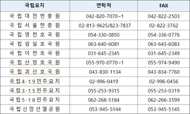 한편, 보훈처는 ”이번 온라인 참배는 코로나19 확산 속에서 국립묘지를 방문하는 보훈가족 등의 안전을 위해 방역 당국과 긴밀한 협의를 통해 내린 불가피한 조치로, 다소 불편하더라도 양해와 협조를 당부드린다“라고 말했다. 더 자세한 내용은 각 국립묘지 누리집을 통해 확인하거나 유선으로 문의하면 자세한 안내를 받을 수 있다.