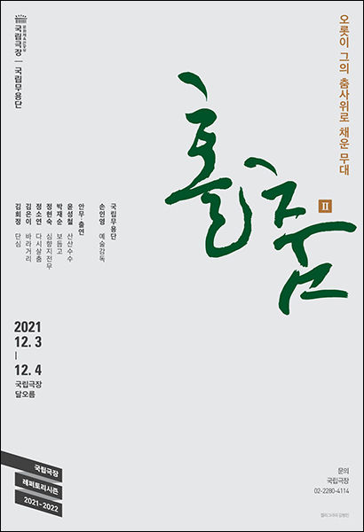 한편, ‘홀춤 II’는 방역 당국의 사회적 거리두기 단계별 실행 방안에 따라 ‘객석 띄어 앉기’를 실시한다. R석 4만 원, S석 3만 원. 공연 예매ㆍ문의 국립극장 누리집(ntok.go.kr) 또는 전화(02-2280-4114).