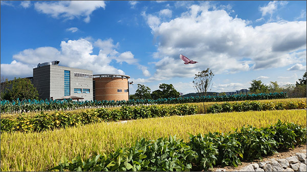 옛 농촌진흥청 터에 새로 조성되고 있는 국립농업박물관(권선구 수인로 154) 외부 공간도 가을의 정취를 물씬 풍긴다. 아직 개관 전이어서 다양한 시설을 모두 즐길 수는 없지만, 야외 체험공간을 산책 삼아 돌아볼 수는 있다. 계단식으로 만들어진 다랭이논과 밭에 각종 작물이 풍성하게 열려 수확의 계절을 실감케 한다. 황금빛 벼가 고개를 숙이고, 조ㆍ수수ㆍ콩 등이 익어가는 것을 가까이서 볼 수 있다. 새가 곡식을 쪼는 것을 방지하기 위해 설치해둔 커다란 독수리 연과 원두막 등이 한적한 농촌 풍경을 그대로 재현하며 목가적 분위기를 자아낸다.