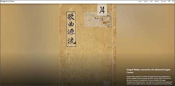 이번 온라인 전시에서는 고해상도로 촬영한 국립국악원 소장 ‘《가곡원류》의 원문 이미지와 함께 해설을 제공하며, 국립국악원 국악아카이브에서 보유한 가곡원류에 기록된 일부 가곡의 공연 영상을 함께 제공해 실제 연주 모습 또한 감상할 수 있다. 또한 이번 전시는 국ㆍ영문 서비스를 통해 전 세계인이 누구나 쉽게 《가곡원류》를 이해하고, ‘가곡’을 감상할 수 있도록 구성했다.