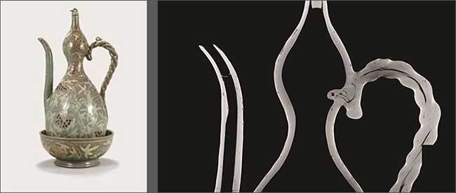 주전자 손잡이의 제작방식도 구체적으로 파악할 수 있었다. 특히 몸체의 무게를 견딜 수 있도록 구조적 안정성을 꾀한 점이 주목된다. 대표적인 예로 <청자 상감ㆍ동화 포도ㆍ동자무늬 조롱박 모양 주전자>와 같이 몸체에 낸 구멍에 손잡이 윗부분을 끼워 넣어 이음새 부분을 튼튼하게 만든 방식을 들 수 있다.
