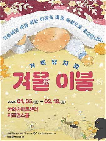 [우리문화신문=이한영 기자] 지난 1월 5일부터 오는 2월 18까지 서울 강북구 월계로 ‘꿈의숲아트센터’ 퍼포먼스홀에서는 뮤지컬 <겨울 이불>을 무대에 올리고 있다.
