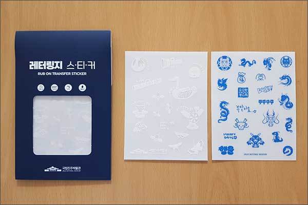 〈특별전 관람 기념품 증정〉은 현재 전시 중인 특별전 <화력조선, 두 번째 이야기>를 관람하고 인증 사진을 찍어오면 기념품을 나눠주는 프로그램이다. 어린이 관람객에게는 ‘무늬(레터링지) 스티커’를, 어른 관람객에게는 ‘복주머니 손수건(핸디타올)’을 나눠준다. ‘무늬 스티커’는 물건 위에 도안을 올린 뒤 문질러서 인쇄 효과를 내는 판박이 제품으로, 국립진주박물관 소장품과 청룡으로 도안을 디자인하여 맞춤 제작하였다.