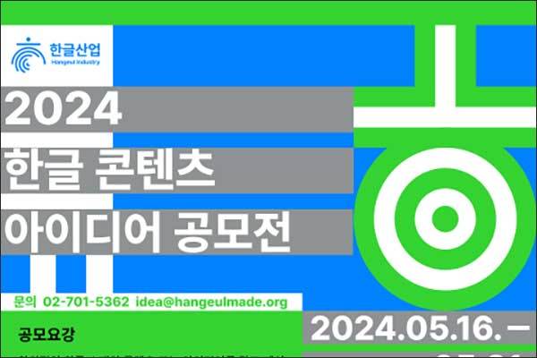 ‘2024 한글 콘텐츠 아이디어 공모전’은 국적과 나이, 성별 상관없이 누구나 참여할 수 있으며, 개인 혹은 팀 단위로 지원할 수 있다. 이번 공모전의 접수는 오는 5월 31일(금)까지 한글 산업화 전용 누리집(www.hangeulmade.org/idea)을 통해 진행된다.