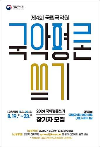 [우리문화신문=정석현 기자] 국립국악원(원장 직무대리 김명석)은 오는 8월 19일(월)부터 8월 23일(금)까지 국악을 중심으로 클래식, 대중음악, 영화 분야 전문가들과 함께 ‘국악평론쓰기 교육’을 연다. ‘국악평론쓰기’는 2021년 처음 시작하여 올해로 4회를 맞이하며, 국립국악원 학술상 평론부문 공모사업과 연계하여 진행하고 있다. 이 사업은 전문평론가 육성과 전통예술에 대한 깊이 있는 비평문화를 만드는 데 이바지해 왔다. 또한, 국악계의 다양한 분야에서 자유로운 비평문화과 차세대 평론가를 육성하는 것을 목적으로 하고 있다.